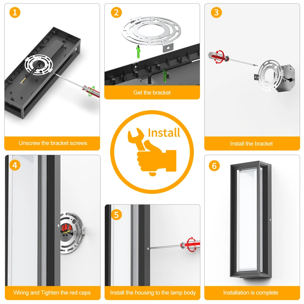 💡Installation and Widely Applications💡This light is IP65 Waterproof.Adopt US Standard Bracket design, electric Hard-wired with wall lamp bracket, contains all installed accessories and installation instructions. Follow the instructions, and you can install it easily on your own. Best suited for courtyards, balconies, bedrooms, exhibition halls, restaurants, cafes, squares, corridors, stairs, hotels, and more.